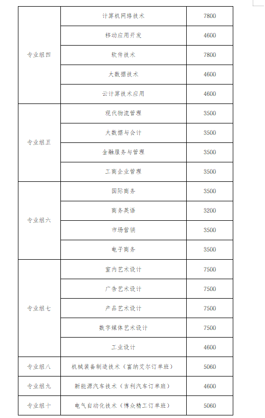 学校2026年单招招生专业按专业组划分,共设十个专业组,包含通俗专业、企业订单班专业,同时设有单列招生打算,所有专业均不限考生类别,物理类、汗青类、职高对口类考生均可报考。各专业组膏火按照专业类型分歧有所差别,全体分为七个收费档次,从3200元/年至7800元/年不等,具体如下:专业组一以配备制制类专业为从,包含机械制制及从动化、数控手艺、工业工程手艺、工业产质量量检测手艺、智能制制配备手艺、机械配备制制手艺6个专业,此中机械制制及从动化、数控手艺膏火为5060元/年,其余4个专业膏火均为4600元/年,该专业组是学校的保守劣势专业集群,贴合智能制制财产成长需求。
