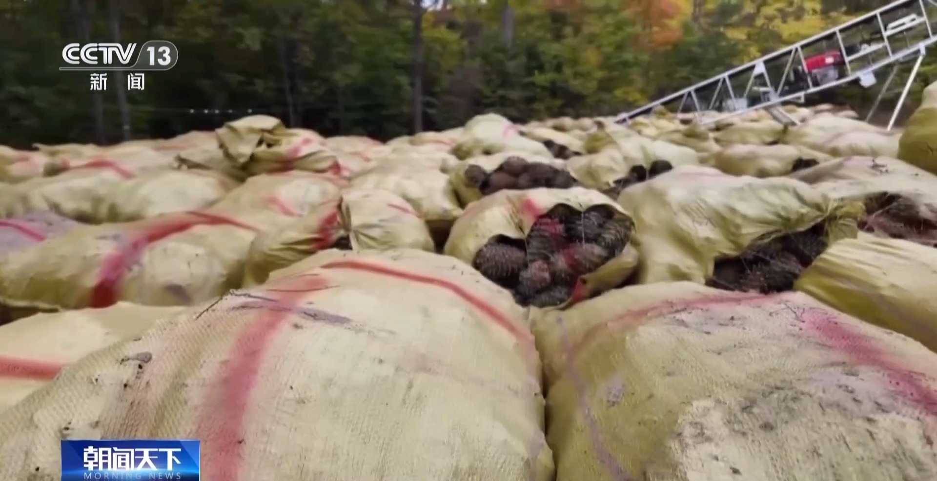 打下的松塔拆袋后,同一运往山下收购点称沉。收入约180元。像孙广福如许的熟手,一个采收季能挣四五万元。